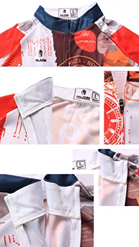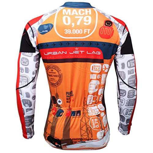 QinYing Men Patterns Breathable Long Sleeve Biking Cycling Jersey Top Orange XS