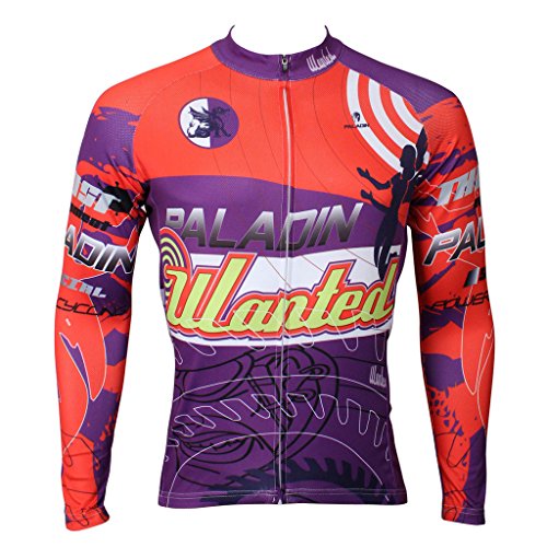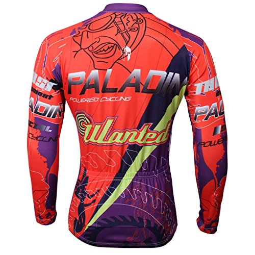 QinYing Men Patterns Breathable Long Sleeve Biking Cycling Jersey Top Red L