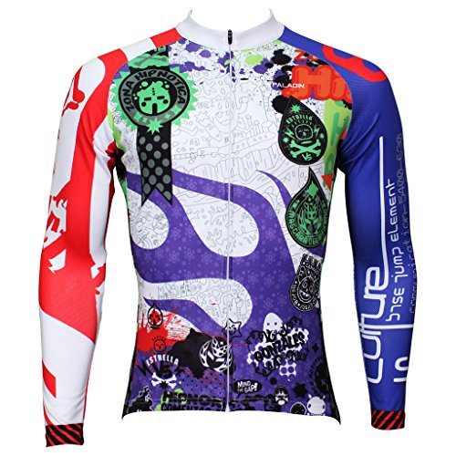 QinYing Men Patterns Breathable Long Sleeve Biking Cycling Jersey Top Blue M
