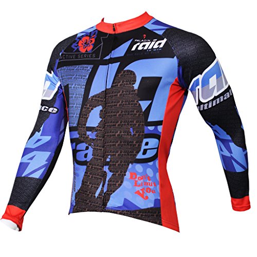 QinYing Men Patterns Breathable Long Sleeve Biking Cycling Jersey Top Blue L