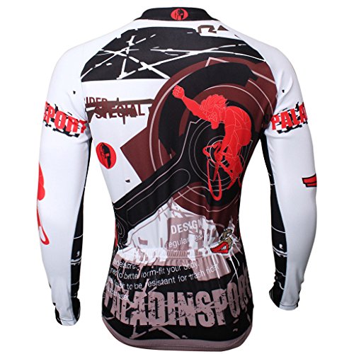 QinYing Men Patterns Breathable Long Sleeve Biking Cycling Jersey Top Red S