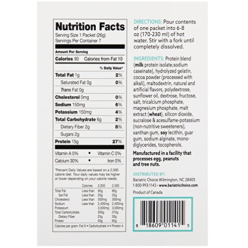 -. Binding : Health and Beauty -. Brand : Bariatric Choice -. Label : Diet Direct -. Manufacturer : Diet Direct -. ProductGroup : Health and Beauty -. ProductTypeName : HEALTH_PERSONAL_CARE -. Publisher : Diet Direct -. Studio : Diet Direct -. Title : Bariatric Choice High Protein Hot Drink (7 Servings/Box)