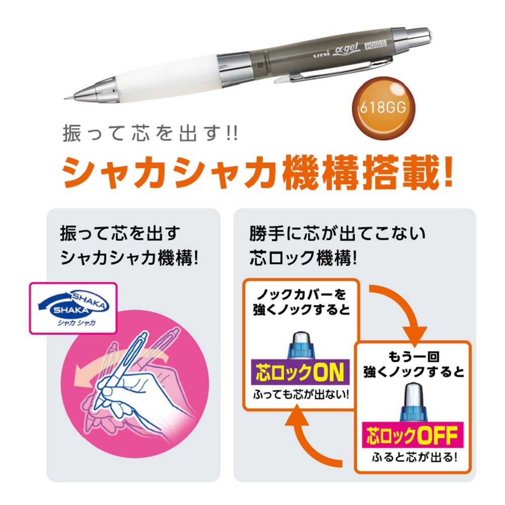 Pilot Uni Alpha-Gel Shaker Mechanical Pencil 0.5mm Hard Grip Chrome Black (M5618GG1PC.24)