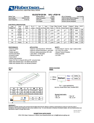 ROBERTSON 2P20116 Quik-Pak of 10 eBallasts, Instant Start, NPF, 1 or 2 Lamp F32T8, 120Vac, 60 Hz, Model ISU232T8120 BA (Replaces Robertson 2P20003, Model ISU232T8120 /B)