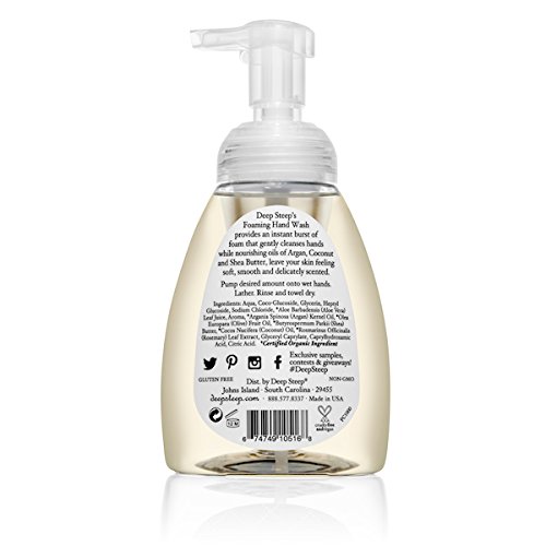 Deep Steep's PREMIUM QUALITY FOAMING HAND WASH is enriched with natural essential oils and plant extracts. These beautifully fragranced foamers will enliven your senses as you drift off to a place of comfort. Formulated for the health-conscious shopper, Deep Steep Foaming Hand Washes can be enjoyed by all ages and skin-types. With key ingredients like Organic Coconut Oil, Shea Butter, Argan Oil, and Aloe Vera, this fun foamer adds gentle moisture to even the most delicate of skin. Featuring premium-quality bath & body care essentials with an aromatherapy twist, Deep Steep is the choice brand for the health-conscious home-spa enthusiast. All Deep Steep's products are formulated, produced, and packaged from their state-of-the-art, FDA-registered and USDA Organic-certified manufacturing facility on Johns Island, South Carolina. Deep Steep is owned by Paul and Peggy Lieber, a husband and wife duo best known for their work as contract manufacturers and pioneers in the natural skin care industry. For over 30 years, the Liebers have been perfecting formulas that feature botanicals and natural ingredients. With a lifetime of expertise, there is no other company whose attention to accuracy, cleanliness and strict quality control in the manufacturing process matches that of the Liebers. "We are a family business, and the products we make for our customers are the products we use in our own families every day. We use them, our kids use them, our grandkids use them." - Paul Lieber Deep Steep is committed to using premium quality ingredients whenever possible, and we unwaveringly adhere to the highest standards. "Having been raised in rural Ecuador, I am aware of the importance of taking care not only of our bodies, but also of our ecosystem and natural resources. Every time I put on my lab coat, I am reminded that I have a responsibility to this end." - Peggy LieberFeature