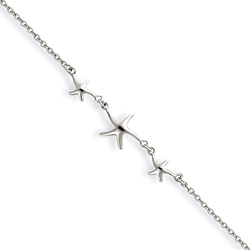Sterling Silver 10 + 1inch Ext Three Stars Anklet - 2.2 Grams in Sterling Silver - JewelryWeb Style: QTA222526SS - FREE gift-ready jewelry box