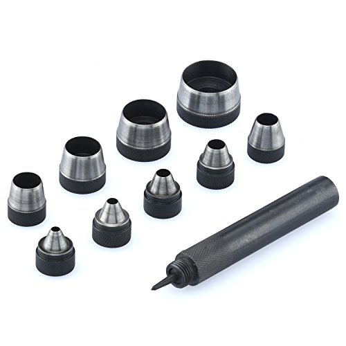Neiko 02614A Interchangable Hollow Hole Punch Set with Handle, Heavy Duty with Handle Case, 10-Piece Large Set