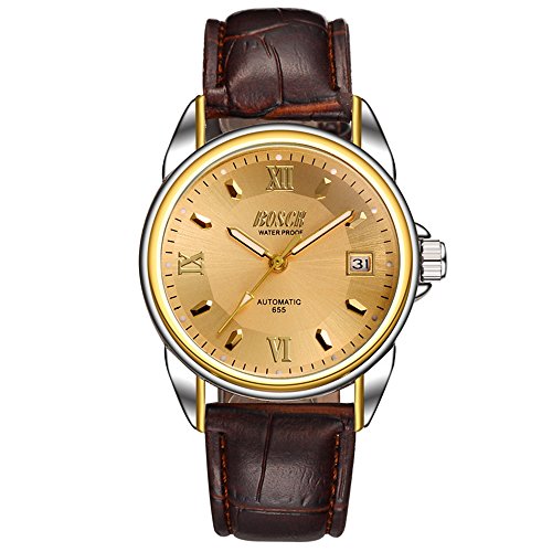 -. Title : BOSCK Business Men Watches Automatic Mechanical Watch Tourbillon Wristwatch (Leather-Gold)