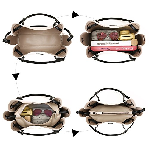 -. Feature : Material: high quality PU leather, soft and durable. Unique concealed magnetic snap closure and double flat shoulder handles adds this handbag a sleek and stylish appearance. / Dimensions: 13.7" L x 5.1" W x 11.8"H, weight:1.5 LB, large capacity comfortably carry all your daily essentials like Ipad, folders, phone, wallets, sunglasses,and some makeups etc. / 2pcs sets: 1 fashionable large tote bag and 1 removable shoulder/crossbody purse with zipper closure. The inner bag can be took out as a single shoulder bag. The large bag has 2 inner slip pockets perfectly for your phone and wallet. / Adjustable shoulder strap and two additional long shoulder straps for crossbody carrying options. / Ideal for work, shopping, business, party, school, dating, trip or everyday use. Classic and elegant looking goes well with any outfit. Perfect gift choice.