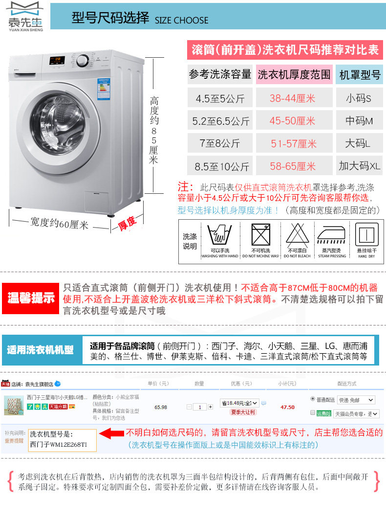 袁先生品牌洗衣机罩,品质保证,有任何质量问题,包退包换喔!