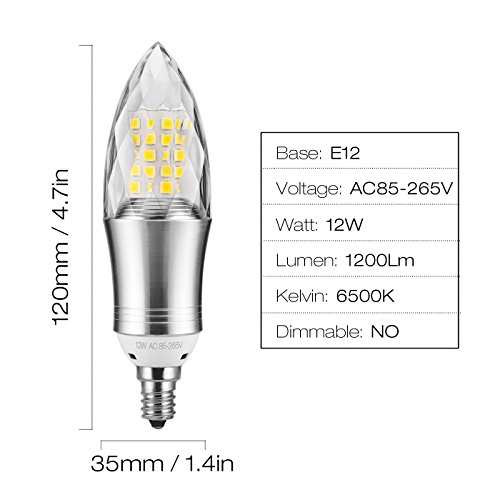 (Yiizon)/Household Supplies/Light Bulbs/DIRECT FROM USA/Yiizon 12W LED Candle Bulbs, Candelabra LED Light Bulbs, 6500K Daylight White, 1200LM, E12 Base...