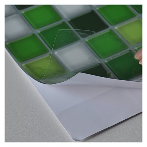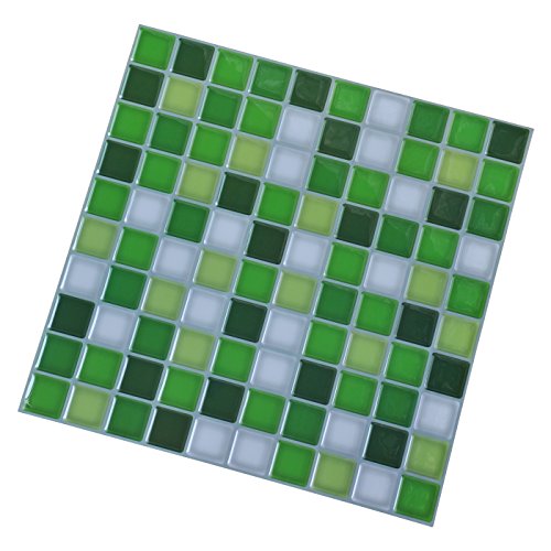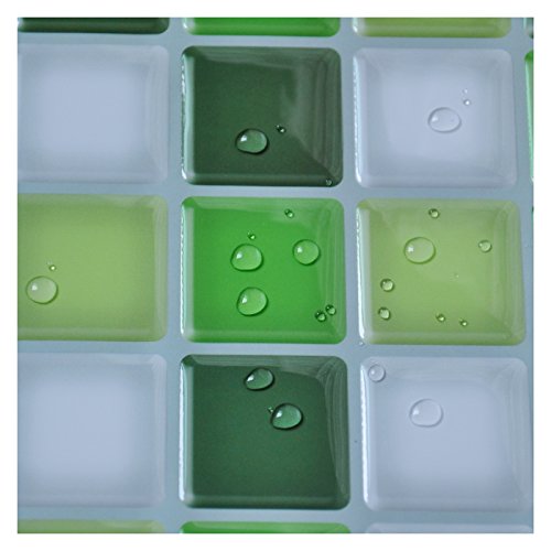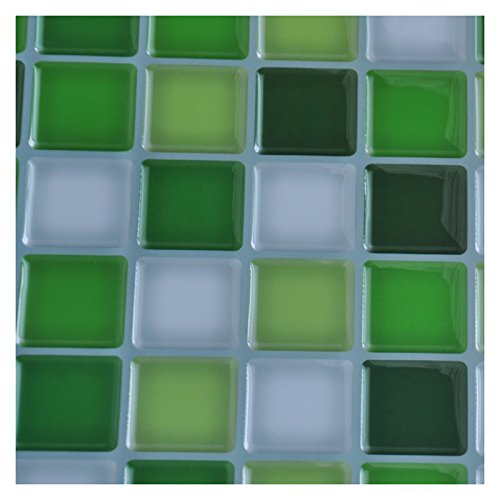 Hentl Peel and Stick Tile 12" x 12" Peel and Stick Kitchen Backsplash Green White Tiles Self-adhesive Vinyl 3D Wall Sticker(6 Tiles)