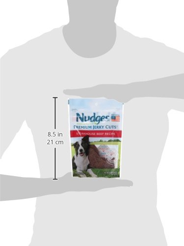 -. Binding : Misc. -. Brand : Tyson Pet Products -. EAN : 0031400052528 -. Feature : Made with real steak / No artificial flavors / No fillers / The perfect way to tell your dog "well done" / Made in the USA / Our steakhouse beef recipe dog treats, made with real American beef and no artificial flavors or fillers / They're they perfect reward for the one who's made your day / Great treat for any dog -. Label : Nudges -. Manufacturer : Nudges -. Model : 24926 -. MPN : 24926 -. PackageQuantity : 1 -. PartNumber : 24926 -. ProductGroup : Pet Products -. ProductTypeName : PET_SUPPLIES -. Publisher : Nudges -. Size : 8.5 by 6-Inch -. Studio : Nudges -. Title : Nudges Premium Jerky Cuts Dog Treats, Steakhouse Beef, 3 Ounce -. UPC : 031400052528