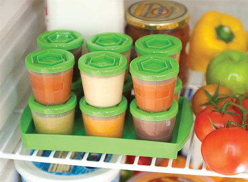 BABY FOOD CONTAINERS BY LITTLE SPROUT: REUSABLE STACKABLE STORAGE CUPS WITH TRAY AND DRY-ERASE MARKER (SET OF 12 - 2OZ) - GREEN