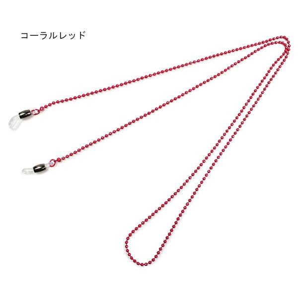 メガネにチェーンをつけるだけで、目元を彩ります。 製造国:日本 素材・材質:真ちゅう、スプレー焼付け 商品サイズ:長さ:約70cm(ゴム輪の先から反対側のゴム輪の先まで) ※サプライヤー直送品 ご注文後3~4営業日後の出荷となります【商品名】メガネチェーン コートペイント 70cm ICG-7・コーラルレッド・052031