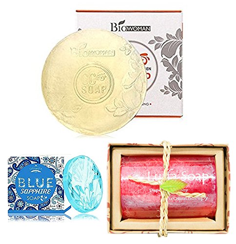 BIOWOMEN C COLLAGEN LUFFA PAPAYA BLUE SAPPHIRE SOAP ANTI-AGING FIRMING SMOOTH SOFT BRIGHT SKIN [Get Free Tomato Facial Mask]