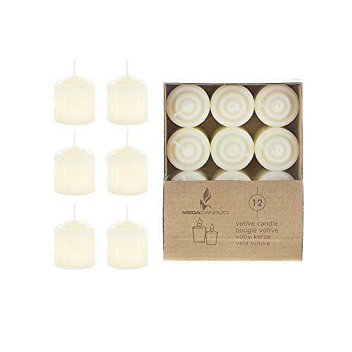 Mega Candles - Unscented 8 Hours Votive Candles - Ivory, Set of 12