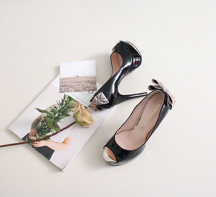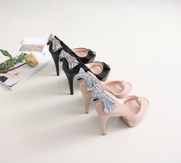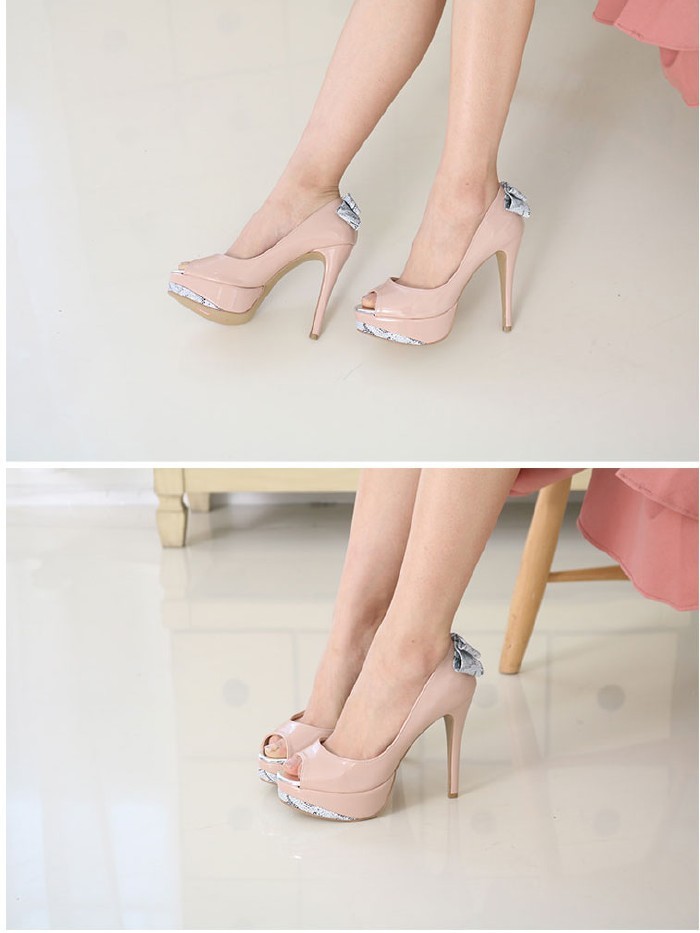 商品名:パンプス レディース オープントゥ ハイヒール ピンヒール バックリボン プラットフォーム 2018 春 ファッション 靴 婦人靴