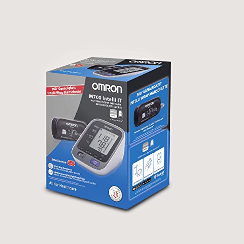 -. Binding : Badartikel -. Brand : Omron -. EAN : 4015672110403 -. Feature : Intelli Wrap Manschette (22 - 42 cm) mit 360°-Genauigkeit - genaue Messergebnisse in jeder Position um den Oberarm / OMRON connect, die mobile App für iPhone/Android - speichern Sie Ihre Messwerte auf Ihrem Smartphone und behalten Sie sie im Auge / Erkennung unregelmäßiger Herzschläge - zeigt an, ob unregelmäßige Herzschläge festgestellt wurden / Speicherplätze für 2 Nutzer (2x100) / Klinisch validiert - die Zuverlässigkeit und Genauigkeit des Gerätes wurde in strengen Testverfahren gemäß ESH belegt / Intellisense-Technologie - Messung ohne unangenehmes Druckgefühl / Ausgezeichnet mit dem Prüfsiegel der Deutschen Hochdruckliga für Messgenauigkeit -. IsAdultProduct : 0 -. Label : Omron -. Manufacturer : Omron -. Model : M700 Intelli IT -. MPN : M700 Intelli IT -. NumberOfItems : 1 -. PackageQuantity : 1 -. PartNumber : M700 Intelli IT -. ProductGroup : Drogerie & Körperpflege -. ProductTypeName : PERSONAL_CARE_APPLIANCE -. Publisher : Omron -. Studio : Omron -. Title : Omron M700 Intelli IT Automatisches Oberarm-Blutdruckmessgerät