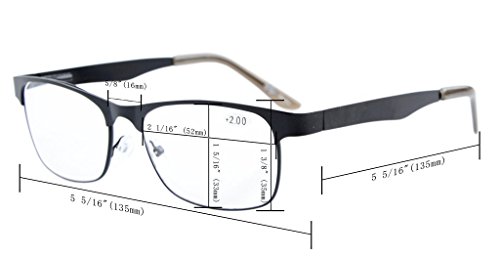 -. Feature : PRODUCTS DIMENSION-Frame material: Metal,Lens width: 2 1/16" (52mm),Frame width: 5 5/16"(135mm),Lens height: 1 5/16" (33mm),Frame height: 1 3/8" (35mm),Bridge (DBL): 5/8"(16mm),Temple length: 5 5/16"(135mm),SP.R.Ing hinge: Yes,Lenses: Aspheric,Head size: Medium to wider / EYEKEPPER SP.R.ING HINGE READING GLASSES-the pupil distance(PD) is 59-63mm,the deviation for pupil distance(PD) less than 2mm,the deviation for strength less than 0.02,the deviation for lenses's horizontal line less than 1mm / EYEKEPPER READING GLASSES-Included a hard zipper case and microfiber Cleaning cloth. Acrylic Lens and Optically Correct / QUALITY FRAME -FDA Registered Reading Glasses and Eyewear,Accord with ANSI Z80.3-2010,Accord with BS EN ISO 12312-1:2013 and EN14139:2010,Accord with AS/NZS 1067:2009,Top quality metal frame,lenses and have sP.R.Ing-loaded hinges / LIFETIME BREAKAGE WARRANTY&30 DAY MONEY BACK GUARANTEE: In case any broken problem happens, contact the seller of Eyekepper without hesitation to solve the problem until satisfaction. Eyekepper provides lifetime after sale service for all Eyekepper reading glasses. Customers can return and get refunded for any reason. You have no risk to try