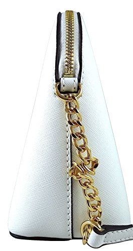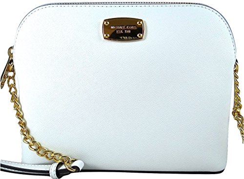 Product Description Michael Kors Large Cindy Dome Cross-body is wrapped in beautiful saffiano finished leather with polished hardware. It is lined in custom monogram print fabric and features a zippered pocket and an open slip pocket. It has a fully zippered top closure and a flattened bottom panel. The front is accented with Michael Kors logo nameplate. There is a single chain and leather adjustable shoulder and cross-body strap. Although Michael Kors product name for this is their "Large" Cindy, this gem measures only 8.5 inches (L) x 7 inches (H) x 3.5 inches (W). It has an MSRP of $198.00. 0
