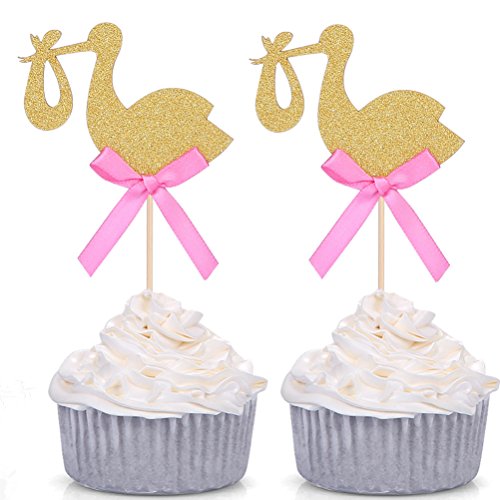 24 PCS Golden Stork Baby Shower Cupcake Toppers - by Giuffi