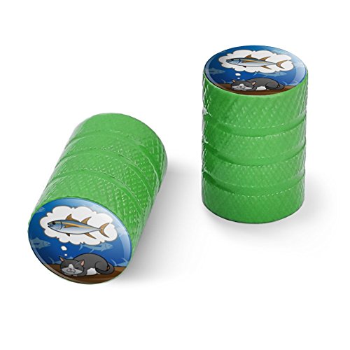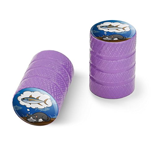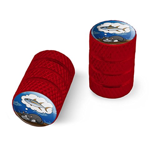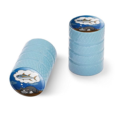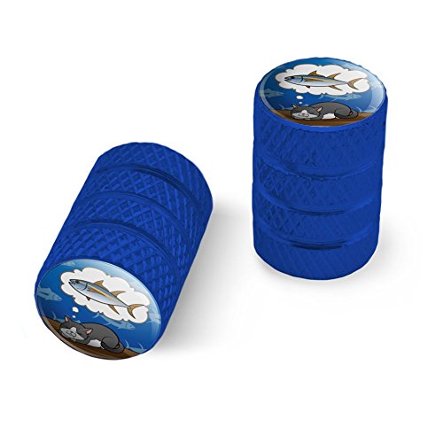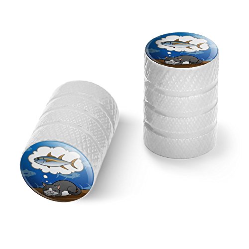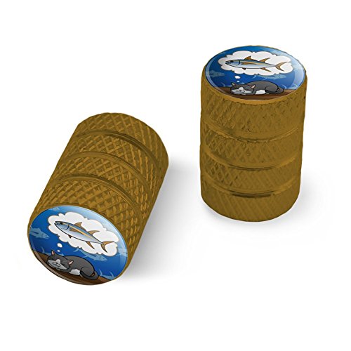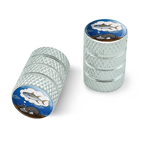 | (Graphics and More)/Cycling Wheel Sports/Bike Trainers/DIRECT FROM USA/Cat Dreaming of Fish Motorcycle Bicycle Bike Tire Rim Wheel Aluminum Valve Stem Caps - Aluminum |