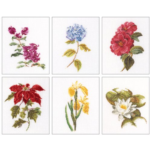 Thea Gouverneur 18 Count Counted Cross Stitch Kit, 6-3/4 by 8-Inch, Floral Studies 7 on Aida, Set of 6