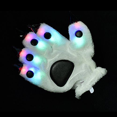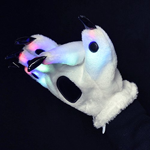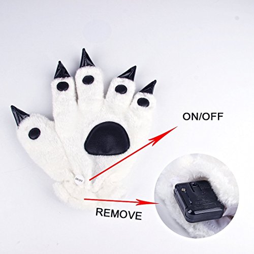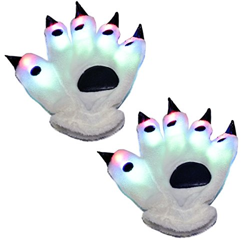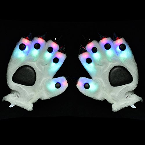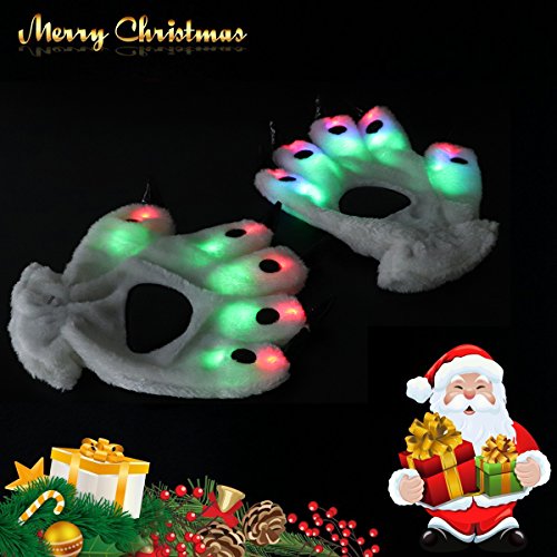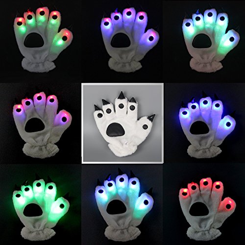 Features: LED bear paw gloves makes an awesome gift for many occasions. It will help you spend a amazing party and enjoy yourself. Multiple Regulation Mode - Fast flashing, slow flashing and constant light. These led finger lights are non-toxic and are designed to last for a long time. Feel smooth coral cashmere material warm your hands. Beautifully packaged gifts touched your loved ones and friends.