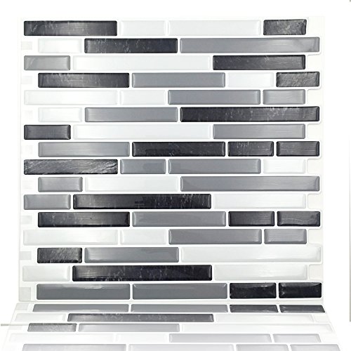 Cocotik Peel & Stick Brick Kitchen Backsplash Self-adhesive 3D Wall Tile Stone , Gray Design , Pack of 10