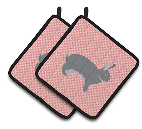 Caroline's Treasures BB7966PTHD Giant Chinchilla Rabbit Pink Check Decorated Pot Holder, 7.5" x 7.5", Multicolor