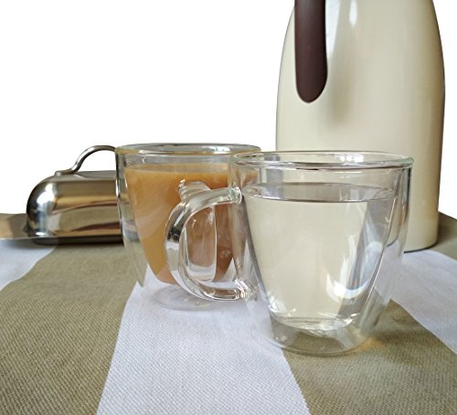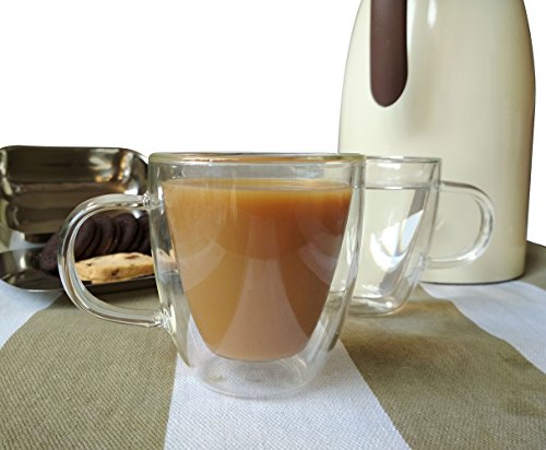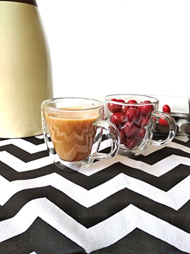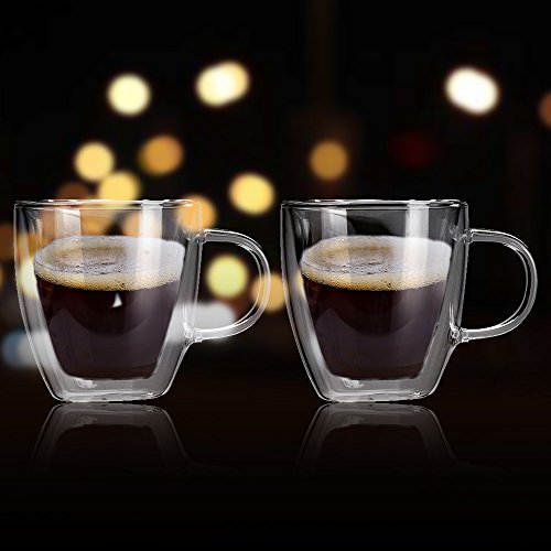 Studio : Tebery Publisher : Tebery Product Description Tebery double walled espresso glasses provide elegant comfort while enjoying any beverage.?Crafted from strong borosilicate, makes these glasses capable of withstanding thermal shock, scratch and break resistant.?You can always hold them with ease, no matter the temperature of your drink - they will never burn or freeze your hands.?Its an exciting product for home, cafe or any occasion and handle for easy carrying .?Someone who received will love it when the mugs to be the gift for wedding, housewarming, and holiday present. 0