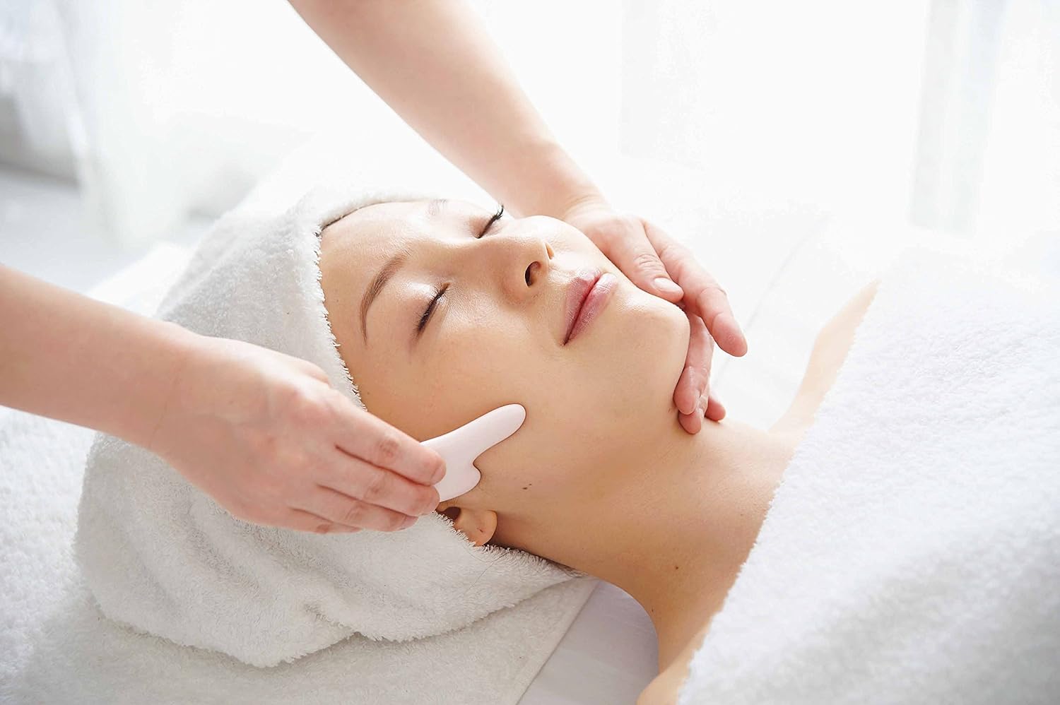 岐阜土岐の窯で作った磁器製。 かっさプレートで顔筋に沿ってフェイスリフト。
