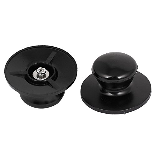 -. Feature : Product Name: Pot Lid Knob; Package Content: 2 x Pot Lid Knob / Material: Metal, Plastic; Color: Black / Total Size: 60 x 35mm/2.4" x 1.4" (Max.D*H) / Net Weight: 59g / Mounting Hole Diameter: 5mm/0.2"