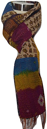 Binding : Apparel Product Description DHL EXPRESS SHIPPING within 1 day from order date. Expected delivery in 4-6 business days. You can TRACK your order at every stage. NO long wait time for your order to be delivered! This is a beautiful, pure silk stole made by quilting Patches of printed pure silk sarees. This is a fully reversible silk scarf or stole as both sides have different printed sarees. THE LAST PICTURE IS OF THE REVERSE SIDE. Size = 20 inches x 80 inches (approximately) Care = dry clean (recommended) OR cold water, gentle hand wash in cold water . This will not bleed color or shrink if care instructions are followed. Colors: AS PER PICTURE Material: 100% Pure Silk. CONDITION = excellent, mint, unused condition. USAGE = Wear it with an evening dress as a wrap/shawl, frame it as an art work/tapestry, use it as a stunning bed runner or Table runner. This is a vintage item. Minor imperfections might exist and make each one unique. Interesting information: -Sujani kantha or straight kantha used for quilted or making scarves such as the ones in this listing are created using straight kantha stitches. It is relatively simple stitch but due to the number of stitches needed to impart longevity to vintage saree fabric quite time consuming to produce one scarf. However result is absolutely beautiful. -There are several sub-styles within Kantha form of embroidery. The most difficult, time consuming and complex are nakshi kantha motifs as in these highly intricate tribal, wildlife and mythological motifs are created using very small stitches. Special care is taken with every order! INTERNATIONAL SHIPPING -- Please note that any applicable custom charges or fees associated with shipping are the responsibility of the buyer if there are any. Please contact your local customs organization for more information. 0