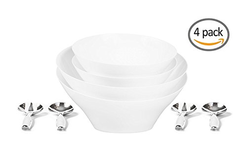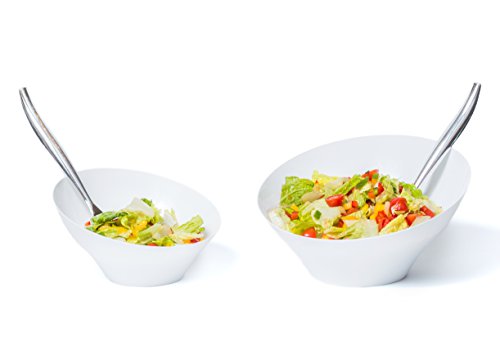 These white plastic bowls are both beautiful and practical. The exquisite angled design makes it easy to pick up these bowls and grip them strongly, even when they are full of food. The shape of the bowls also means that your food will be presented incredibly beautifully, as the eye is drawn towards the contents of the bowl. This set comes with four bowls, two large and two medium, so you can serve your guests a range of different dishes.