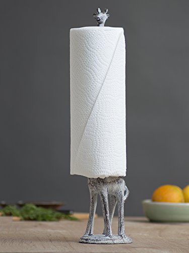 - Feature : Keep your kitchen paper towels on this elegant, decorative, durable paper towel holder. The solid, cast iron, heavy giraffe holds most types of paper towel rolls. It's heavy weight make it easy to detach paper towel sheets. / Great gift idea for birthday, Christmas, Hanukkah, House Warming, Wedding, Mother's Day and more. / Use it as a free standing toilet paper holder in your bathrooms to keep extra rolls of paper. Depending on roll width, you can keep 2-3 rolls of paper. The Giraffe Paper Holder is an elegant , decorative addition to any bathroom. / Covered Amazon's A-to-Z Guarantee. Shop with confidence. / Comes in Rustic Brown and Antique white colors to fit most interior design styles.
