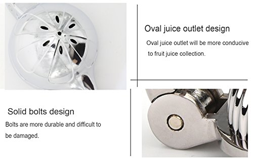 【Stable Material】This manual lemon juicer is made of sturdy metal, never rust and no toxic. With its added reinforced hinges, thick casting and strong levers, it's a heavy duty lemon squeezer.
