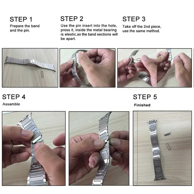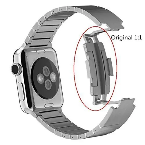 | [해외]38 미리메터 42 미리메터 대한 apple watch 실버 스트랩 체인 스테인레스 스틸 금속 바늘 제거 원래 버튼 |