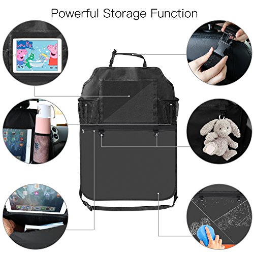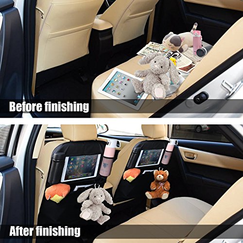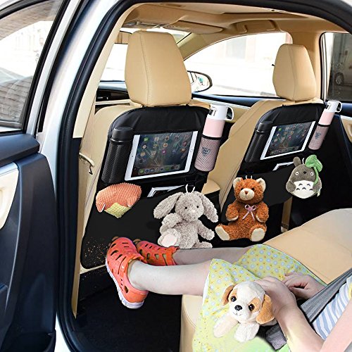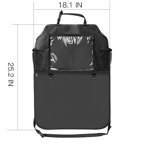 Pros: 1. Very easy to Install- Use the quick release buckle you are able to install it in 1 minute. 2. Very easy to clean- The waterproof material makes it is easy to clean the muddy footprints just use wet sponge or cloth. 3. Lots of pockets for all the kinds stuff and totally cover the seat back to protect the seats from dirty shoes and damage.
