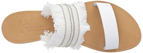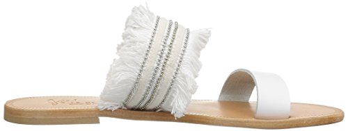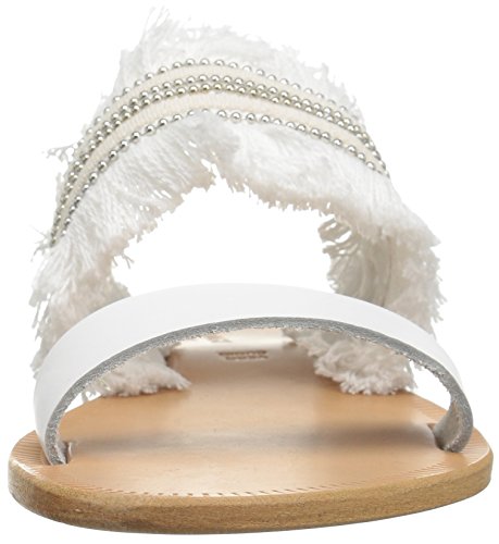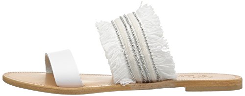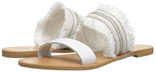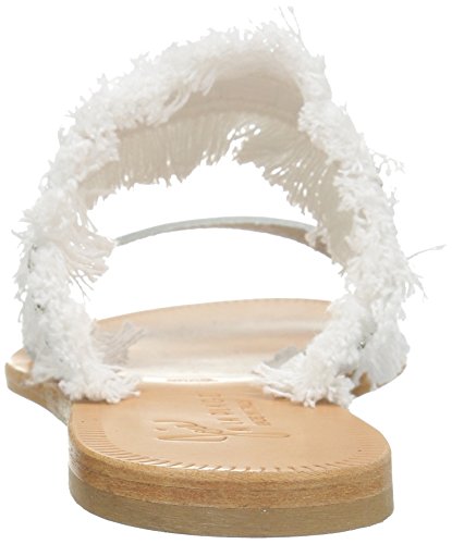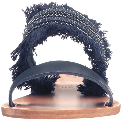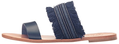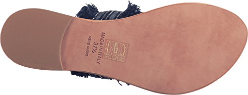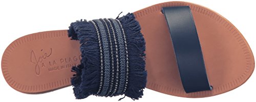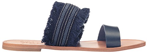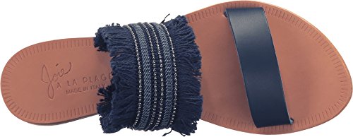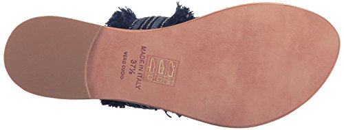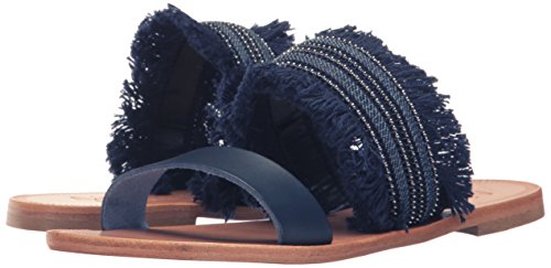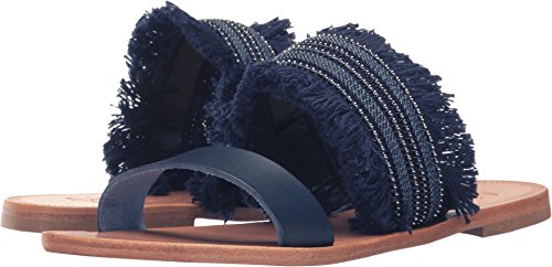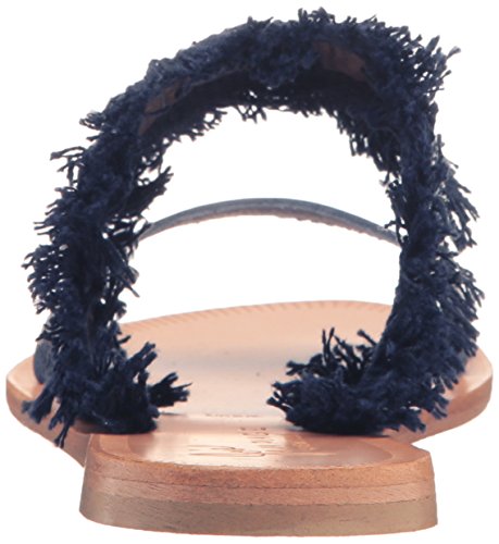 Product DescriptionSlip-on, double strap sandal with denim, fringe edges and silver studded detailing0