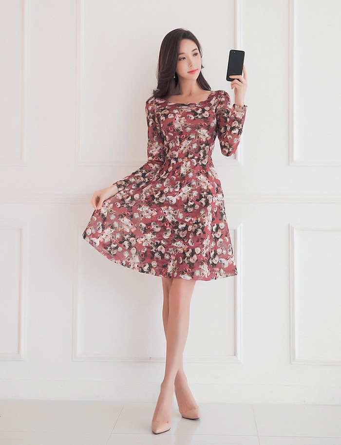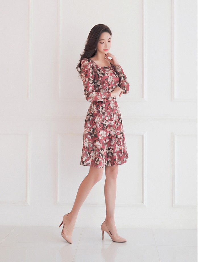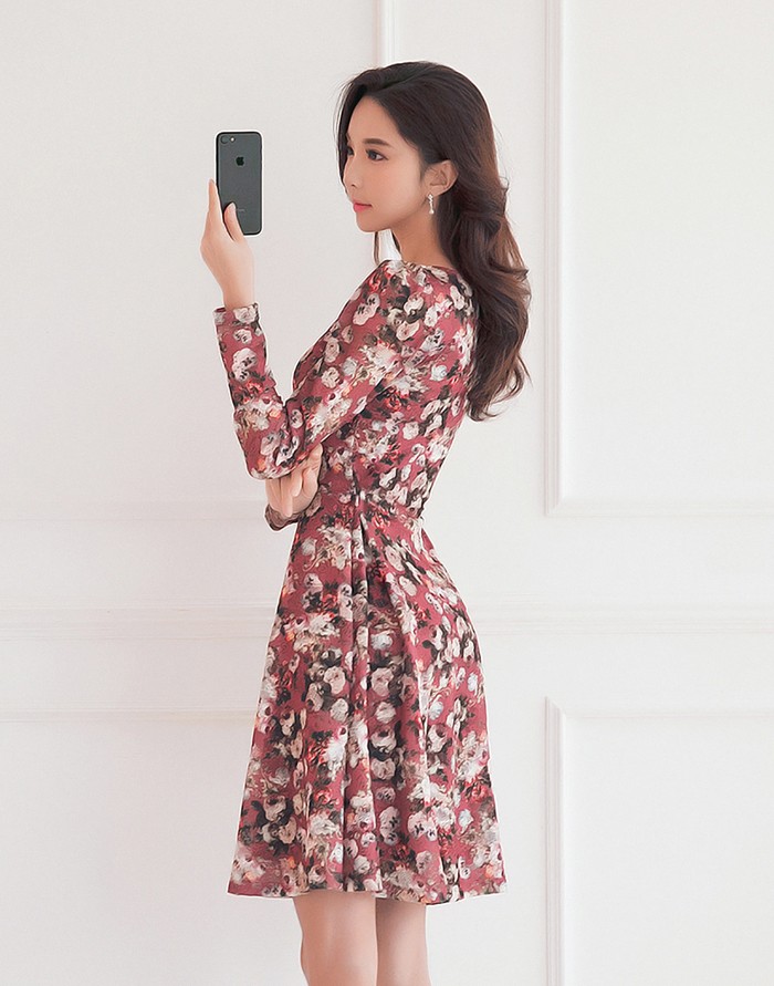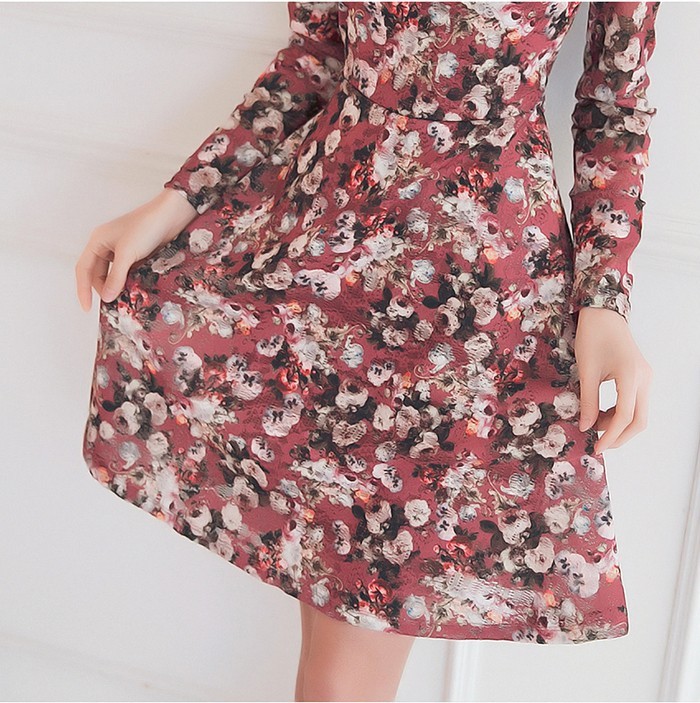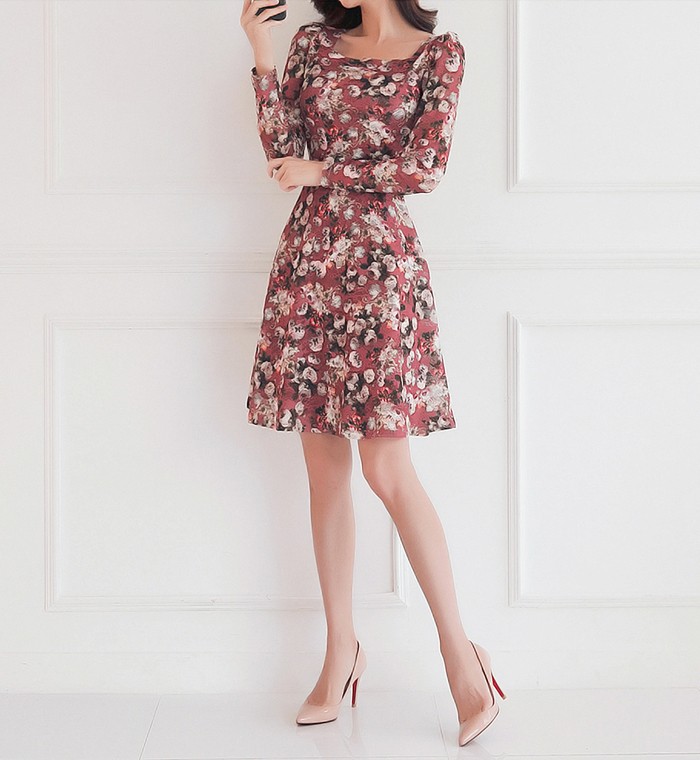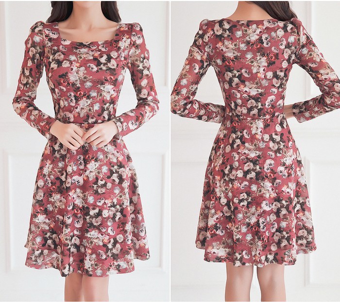 商品名:ワンピース 長袖 花柄 フラワー Aライン きれいめ