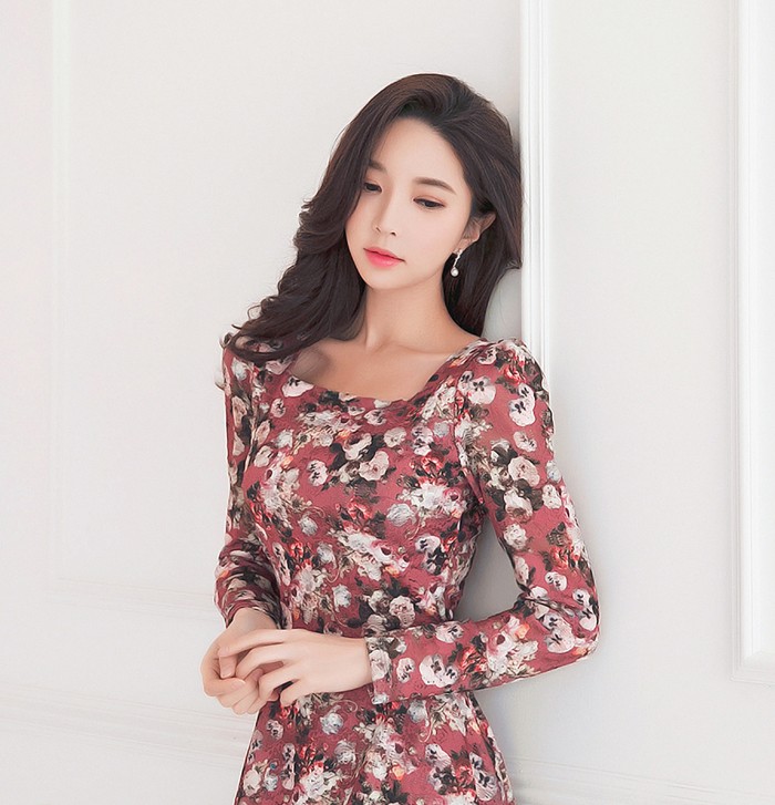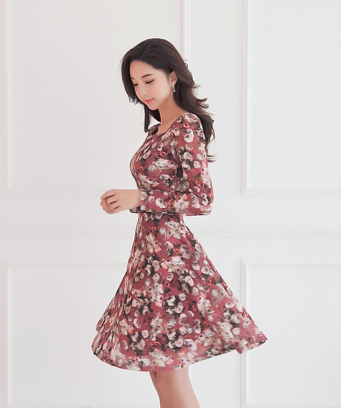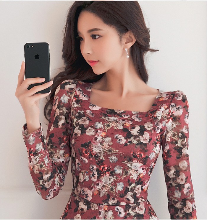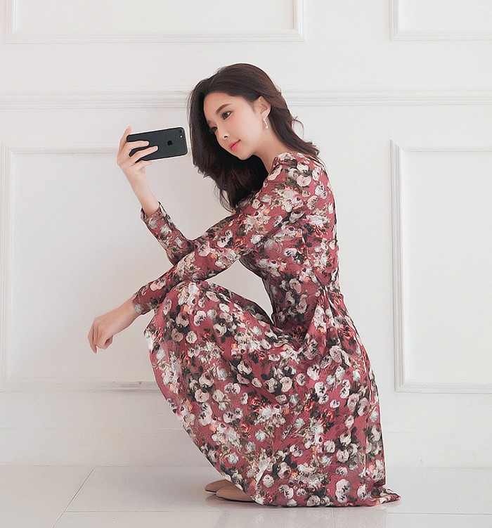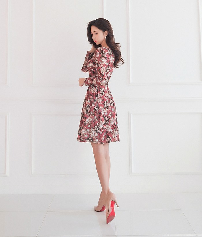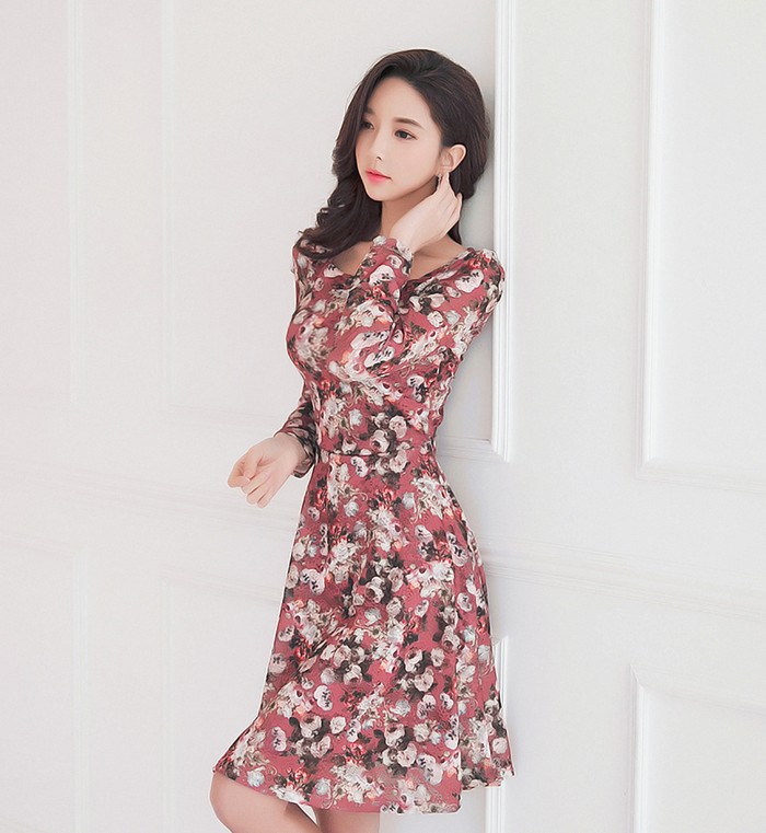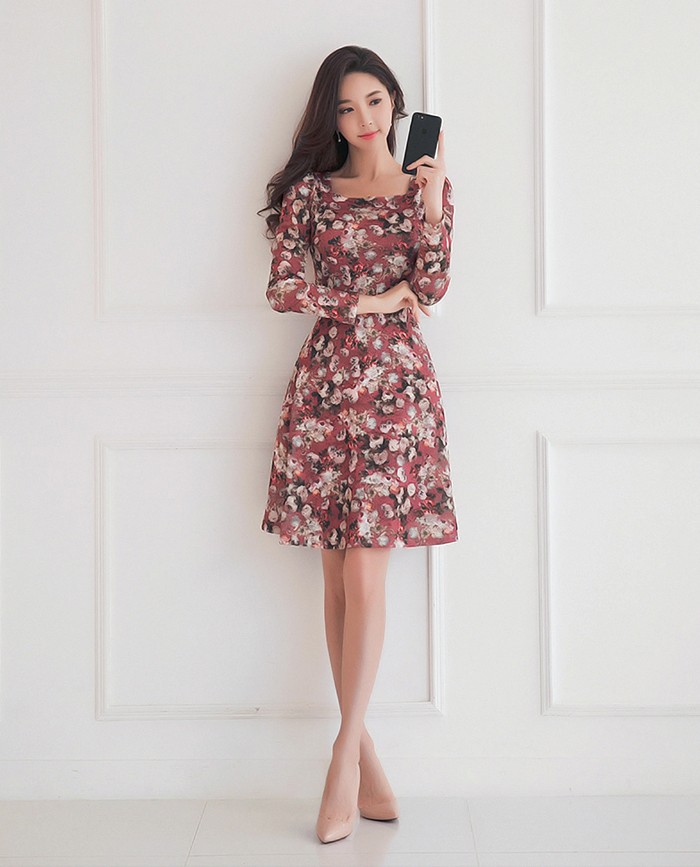 商品名:ワンピース 長袖 花柄 フラワー Aライン きれいめ