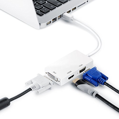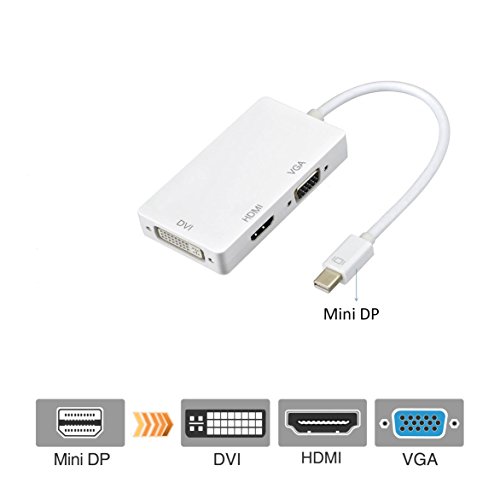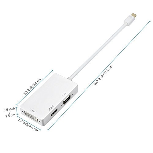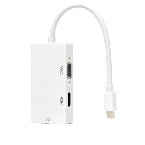 Eriotpy® 3-in-1 Mini DP DisplayPort to VGA DVI HDMI Adapter Connector Apple MacBook MacBook Pro MacBook Air (White)