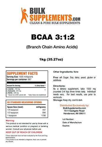 BulkSupplements Pure BCAA 3:1:2 (Branch Chain Amino Acids) Powder (1 Kilogram)