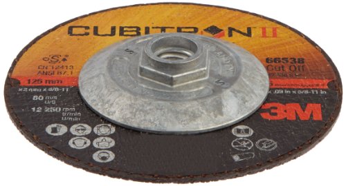 3M Cubitron II Cut-Off Wheel T27 Quick Change, Ceramic Grain, 5" Diameter x 0.09" Width, 36 Grit, 5/8"-11 Arbor (Pack of 1)