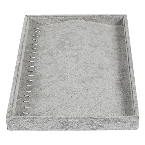 Jewelry Organizer Tray – Stackable Display Case with Metal Hooks for Pendants, Necklaces, Grey - 14 x 9.5 x 1.2 inches