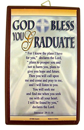 God Bless You Graduate Graduation Wall Plaque with Scripture, 5 3/8 Inch