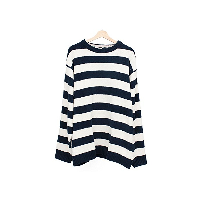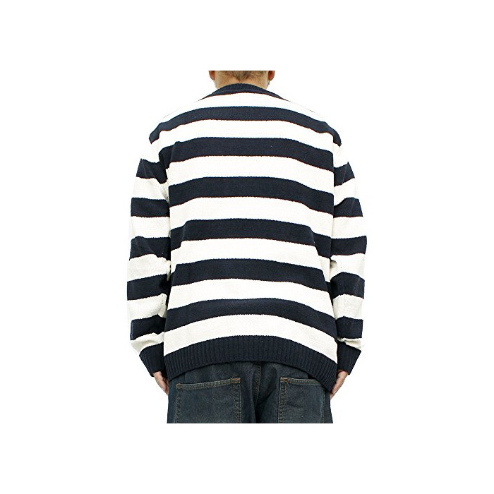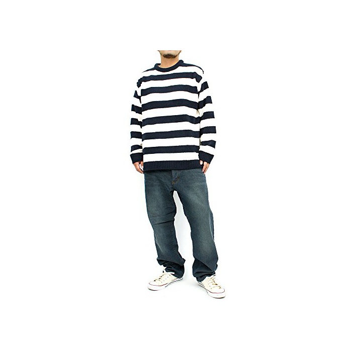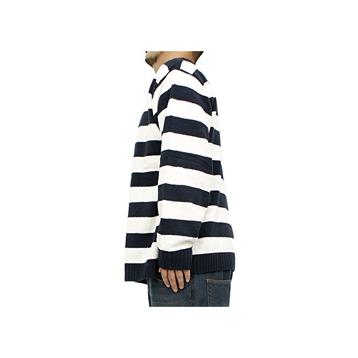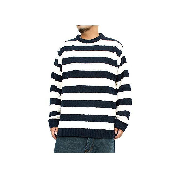 One colors 니트 맨즈 큰 사이즈 크루 넥 보더 무지 케이블 뜨기 부쿠레 스웨터 4L 화이트×네이비(93)