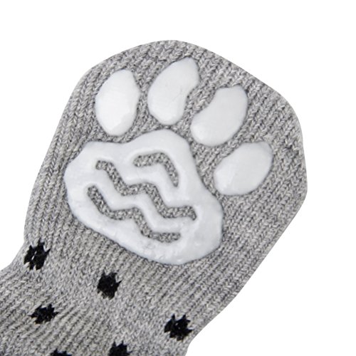 -. Title : UEETEK 4pcs Pet Dog Puppy Cat Non-Slip Socks with Rubber Paw Prints - Size L (Grey)